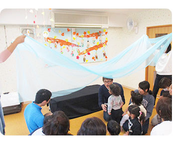 県立こどもの館の皆さまがお部屋で一緒に遊んでくださいました。 |