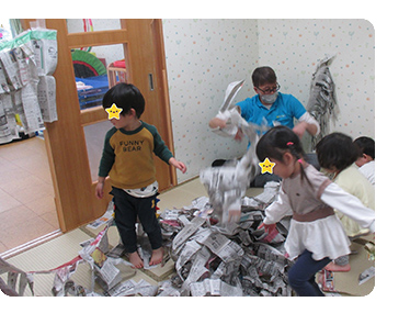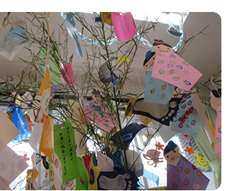 鈴とタンバリンを鳴らして七夕の歌をみんなでうたいました。 |